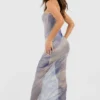 BOOHOO Marble Mesh Bandeau Maxi Dress