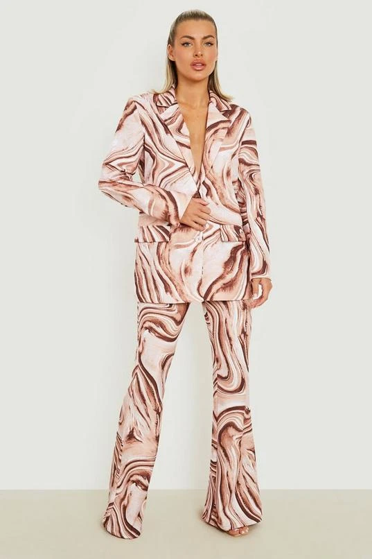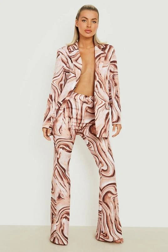 BOOHOO Marble Print Fit & Flare Pants