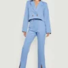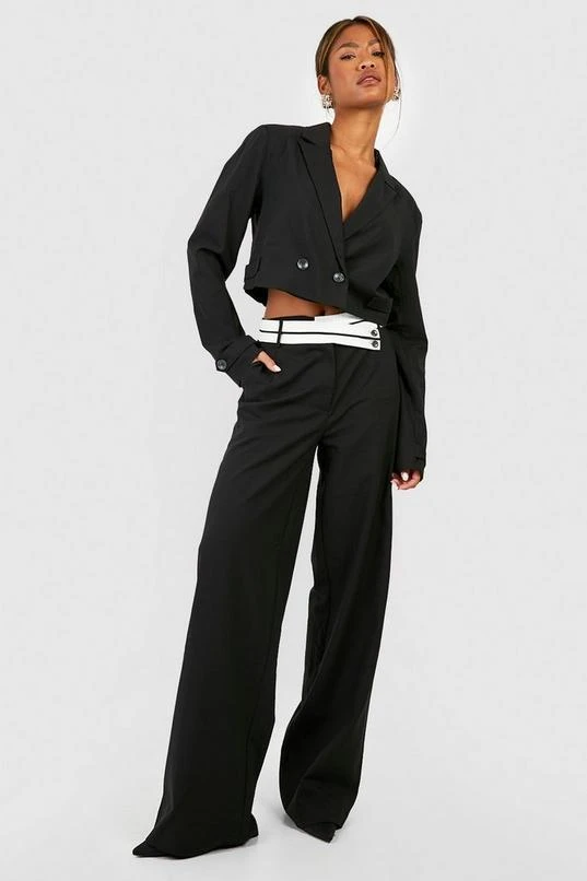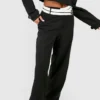 BOOHOO Marl Contrast Waistband Wide Leg Dress Pants