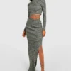 BOOHOO Marl Knit Wrap Crop Sweater And Thigh Split Skirt Set