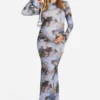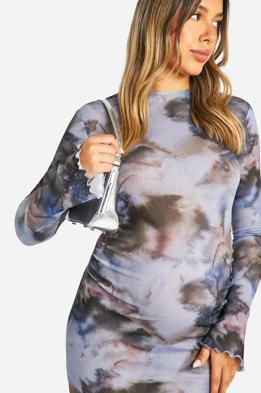 BOOHOO Maternity Abstract Print Lettuce Hem Long Sleeve Maxi Dress