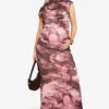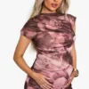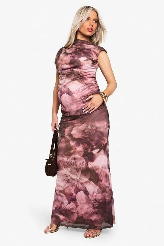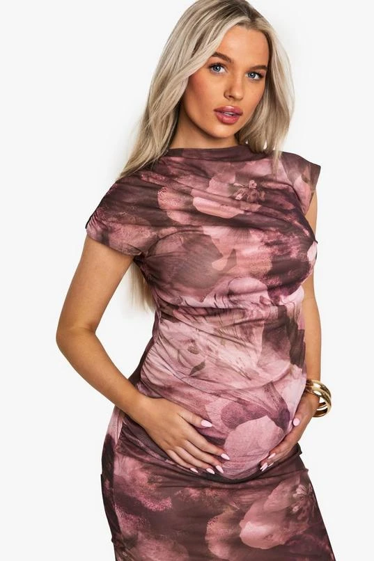 BOOHOO Maternity Abstract Rouched Mesh Maxi Dress