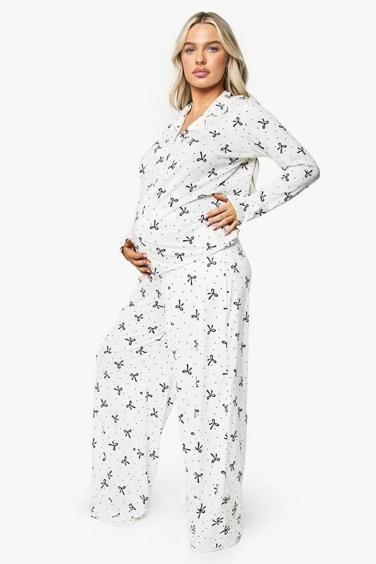BOOHOO Maternity Bow Print Shirt & Trouser PJ Set