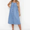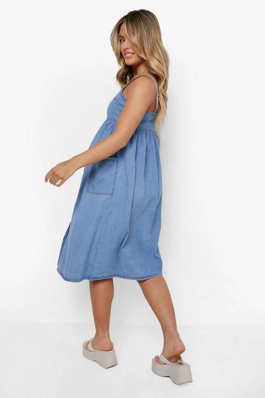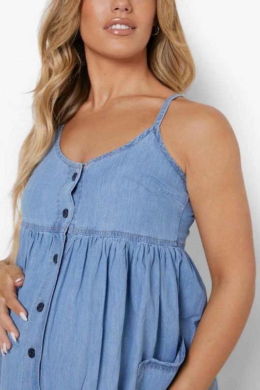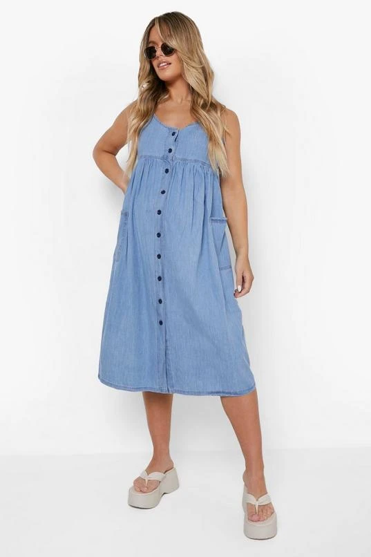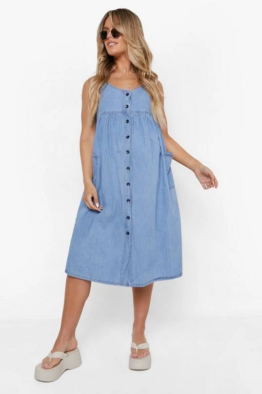 BOOHOO Maternity Button Front Chambray Midi Dress
