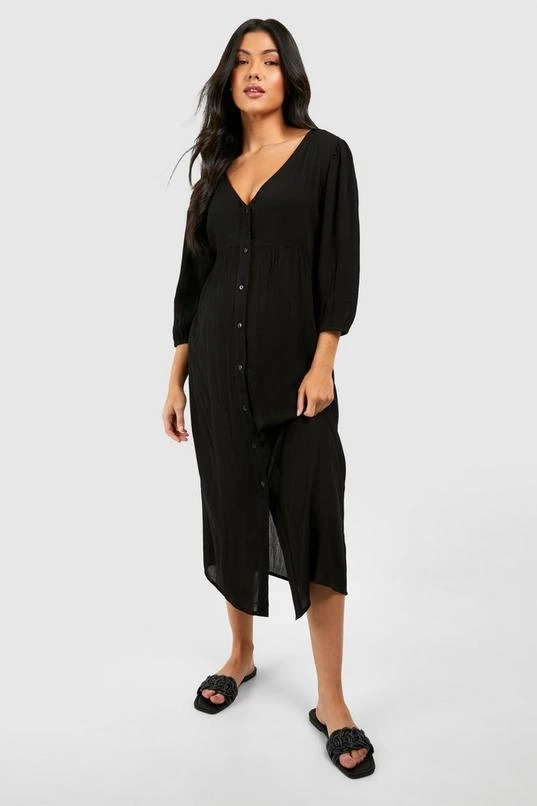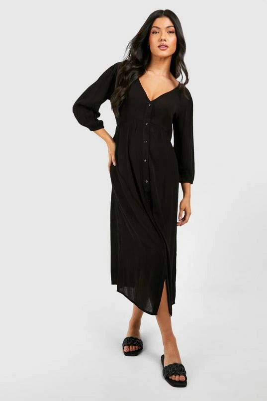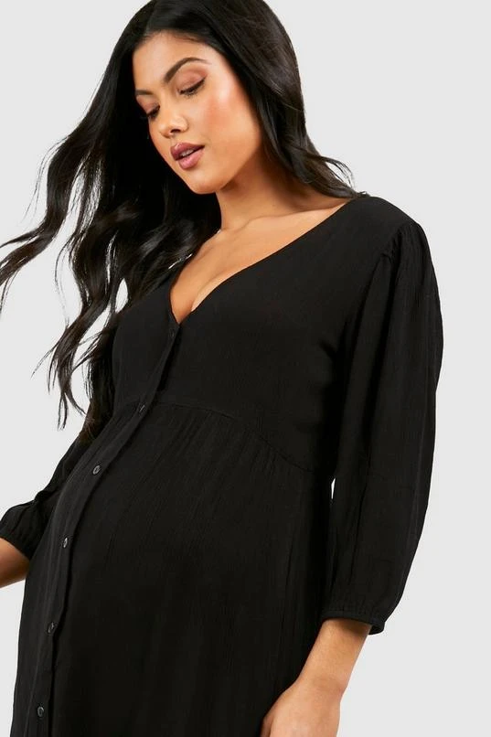 BOOHOO Maternity Cheesecloth Button Down Midi Dress