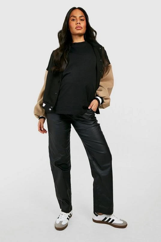 BOOHOO Maternity Coated Pu Straight Leg Jeans