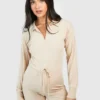 BOOHOO Maternity Collared Wide Leg Loungewear Jumpsuit