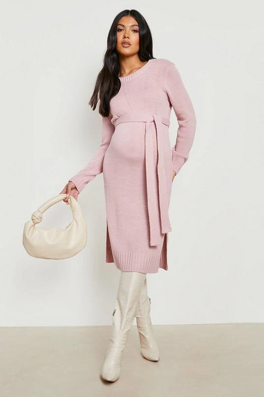 BOOHOO Maternity Crew Neck Sweater Midi Dress