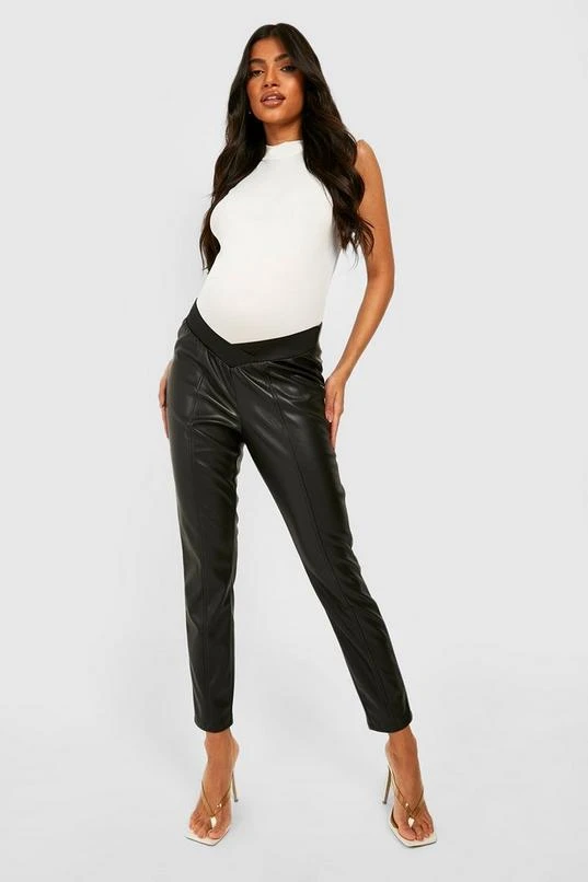 BOOHOO Maternity Elasticated Seam Detail Pu Leggings