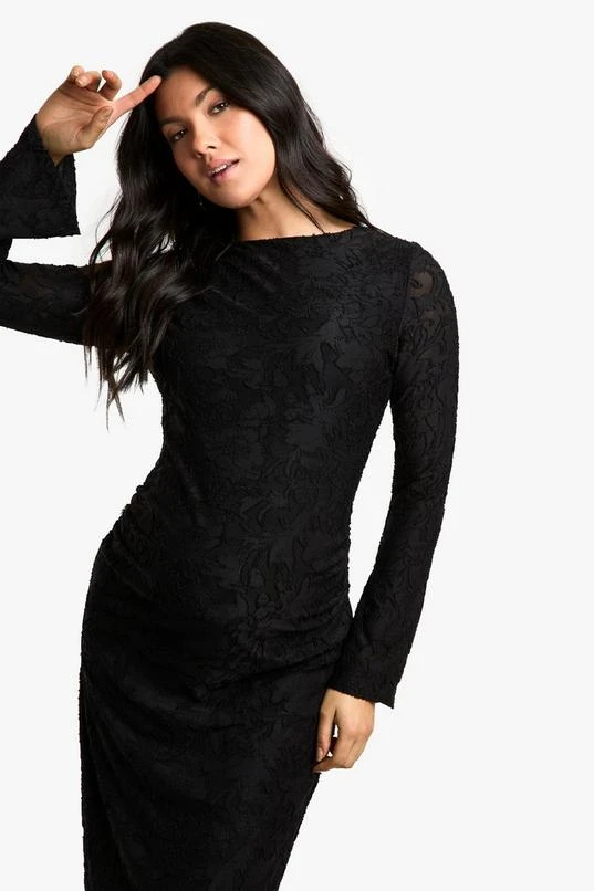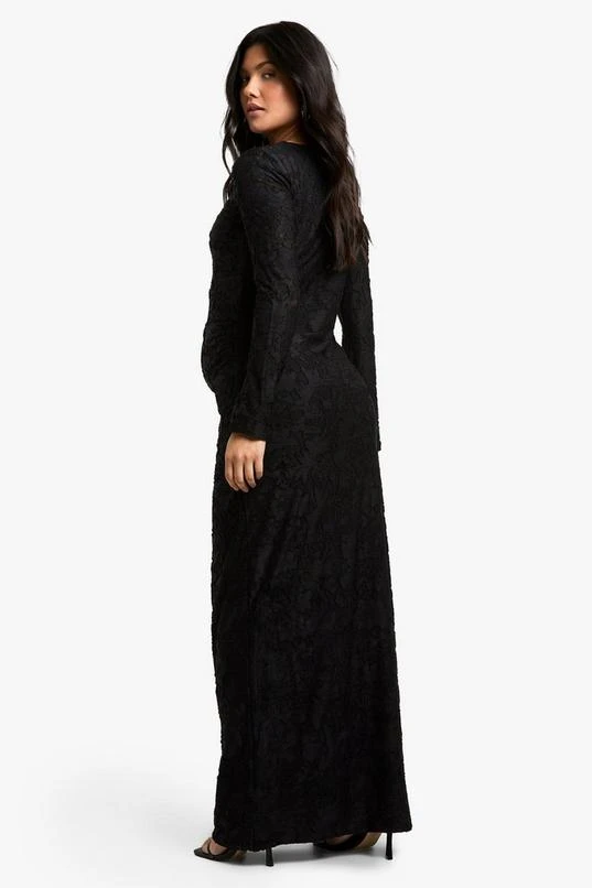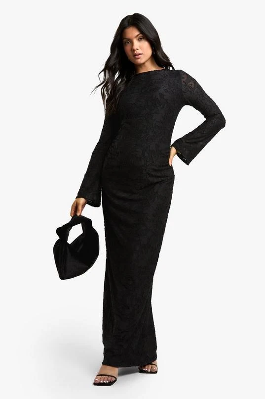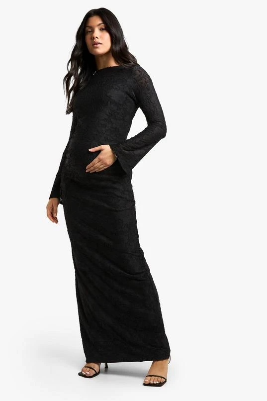 BOOHOO Maternity Floral Textured Flared Sleeve Midi Column Dress
