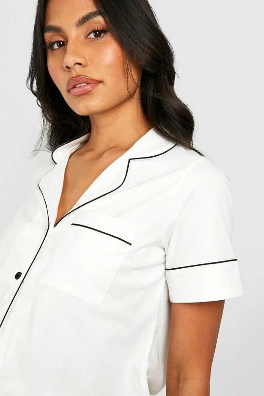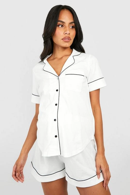 BOOHOO Maternity Jersey Knit Piping Button Pj Short Set