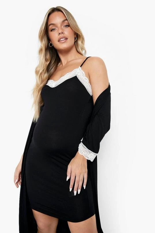 BOOHOO Maternity Lace Nightgown And Robe Set