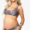 BOOHOO Maternity Leopard Scoop Neck High Waisted Tie Detail Bikini