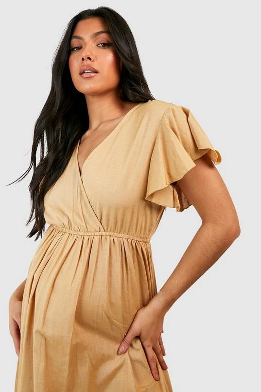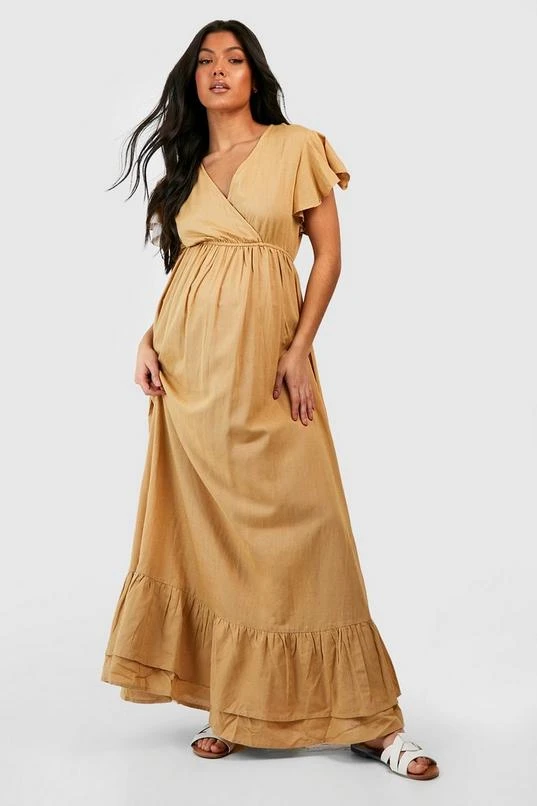 BOOHOO Maternity Linen Frill Hem Maxi Dress