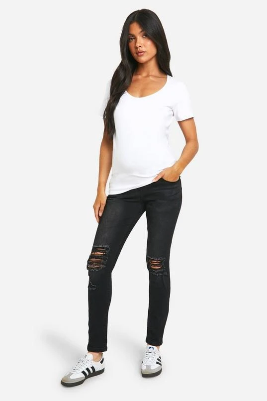 BOOHOO Maternity Over The Bump Rip Skinny Jeans