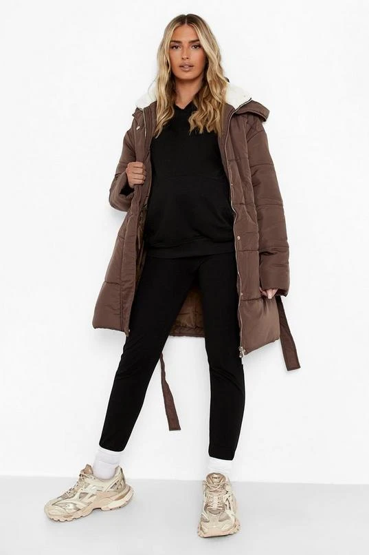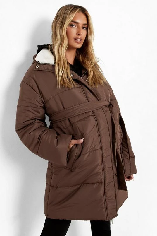 BOOHOO Maternity Padded Borg Detail Parka Coat