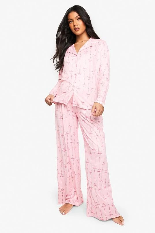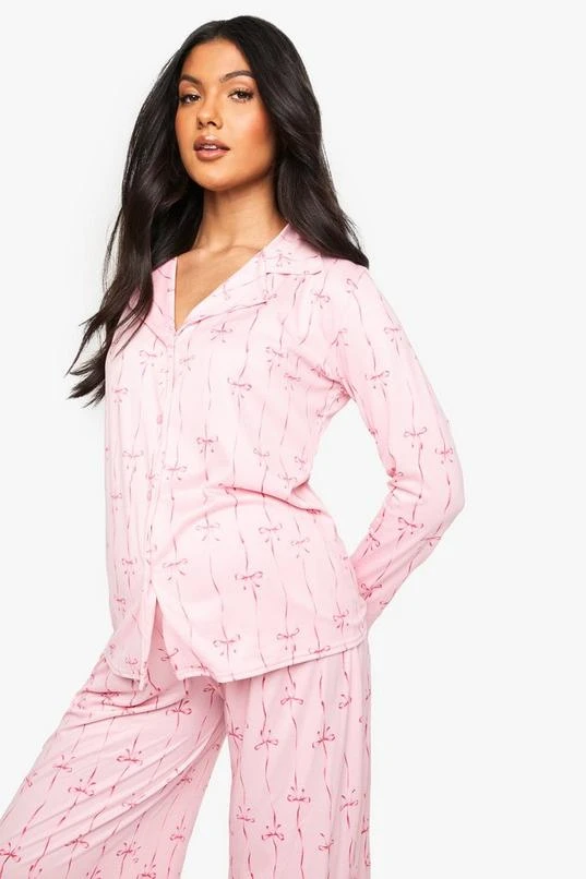 BOOHOO MATERNITY PINK BOW PRINT SHORT SLEEVE SHIRT AND SHORT