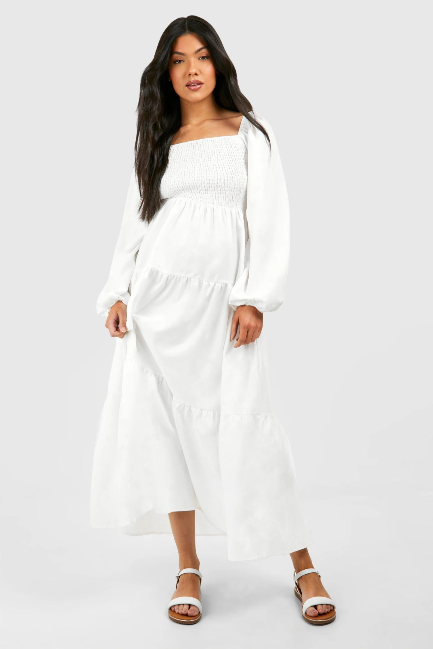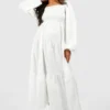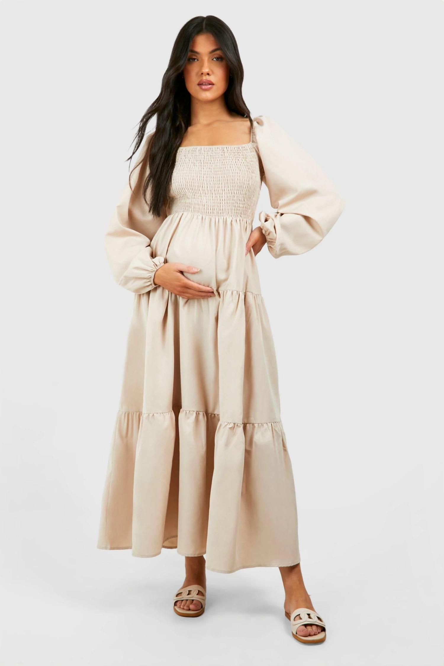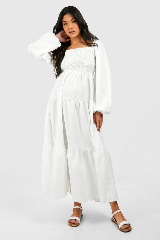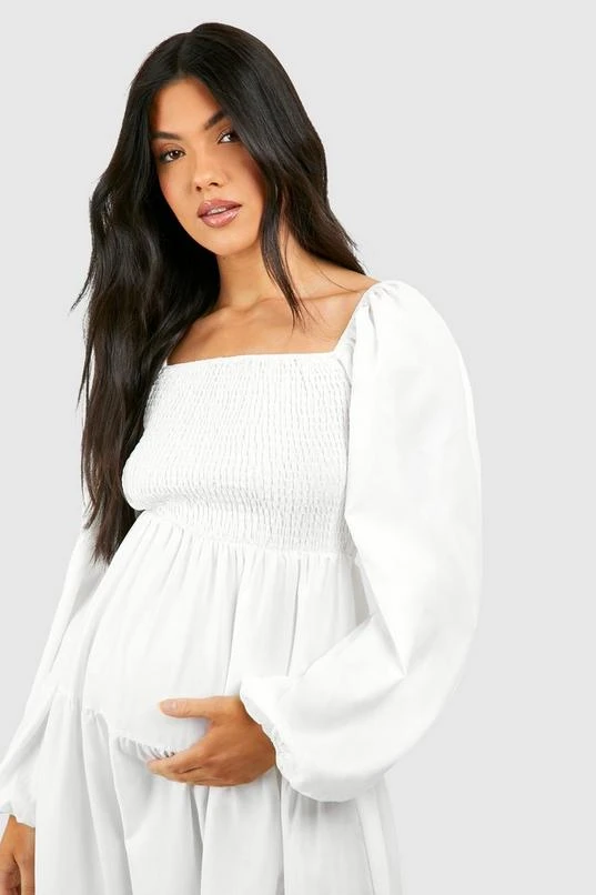 BOOHOO Maternity Shirred Poplin Midaxi Dress