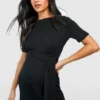 BOOHOO Maternity Short Sleeve Belted Loungewear Jumpsuit