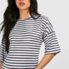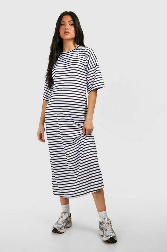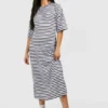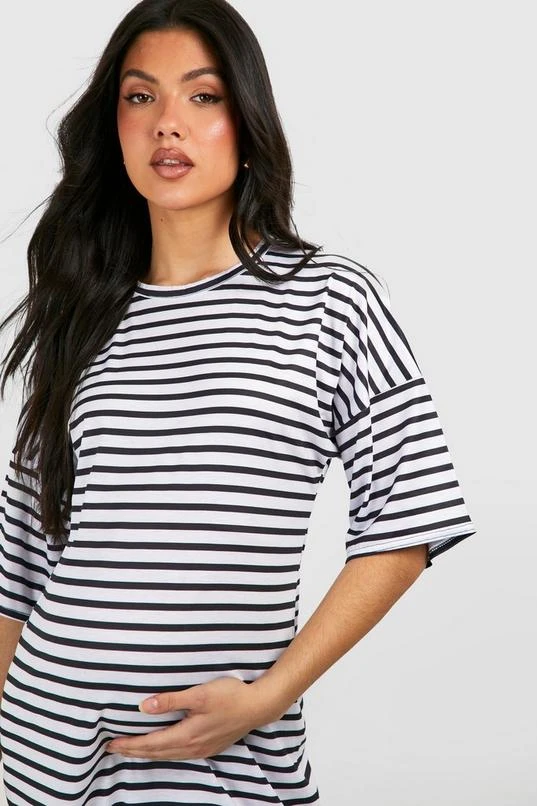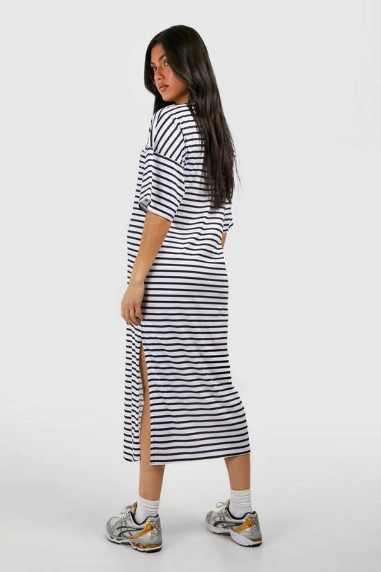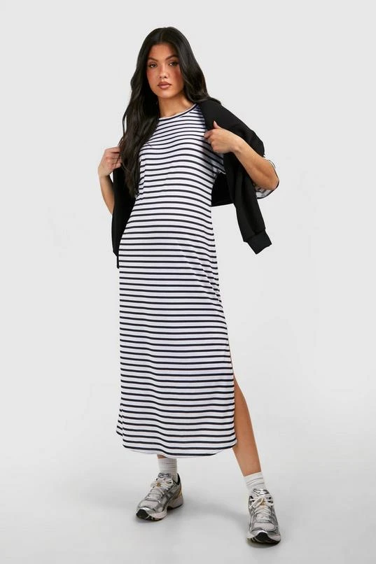 BOOHOO Maternity Short Sleeve Split Hem Striped Dress