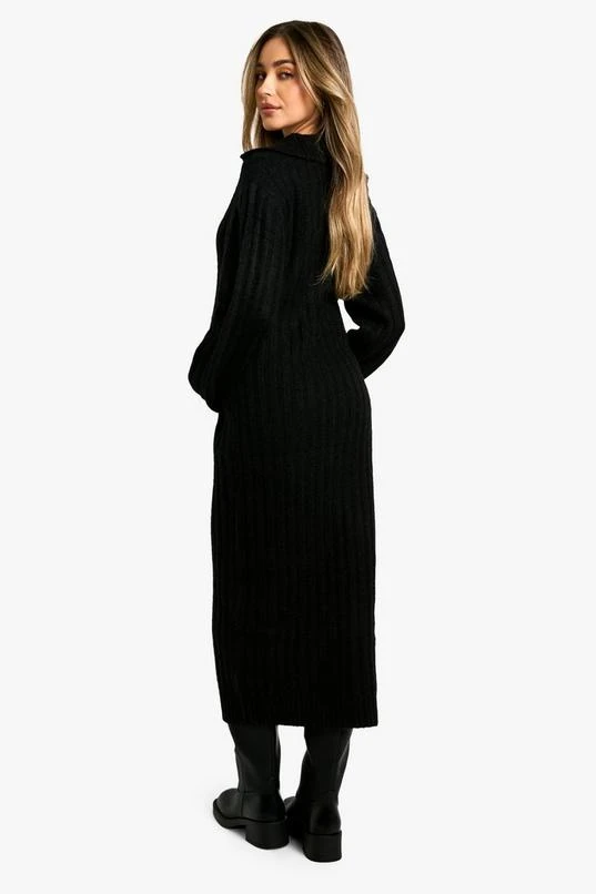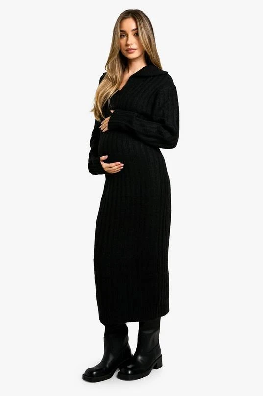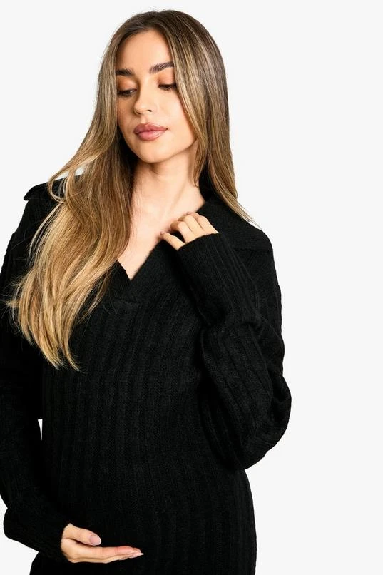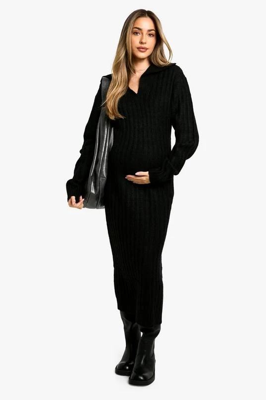 BOOHOO Maternity Soft Knit Thick Rib Collar Detail Maxi Dress