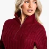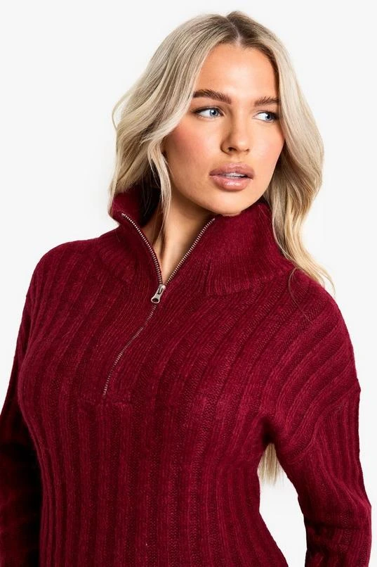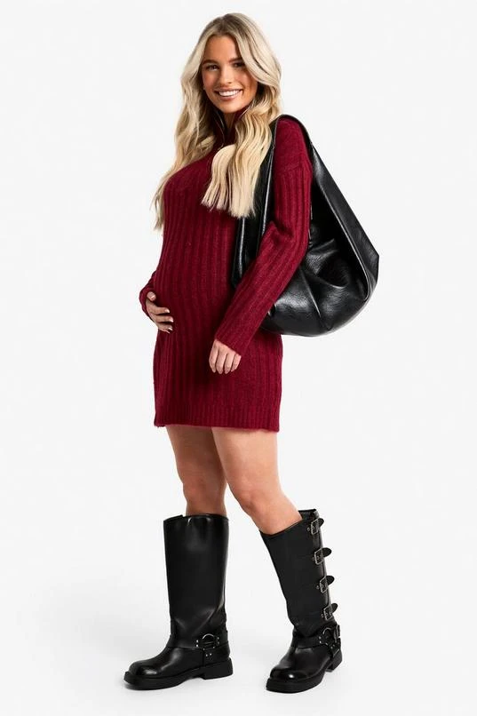 BOOHOO Maternity Soft Knit Thick Rib Zip Neck Oversize Mini Dress