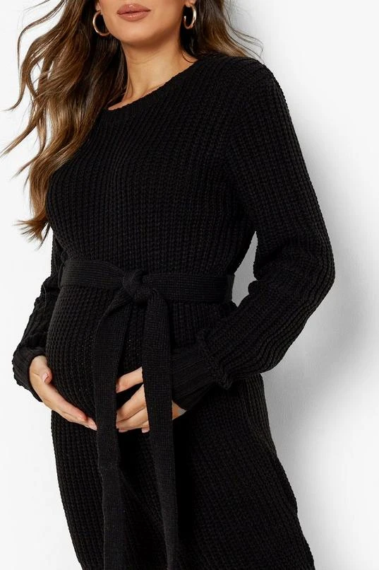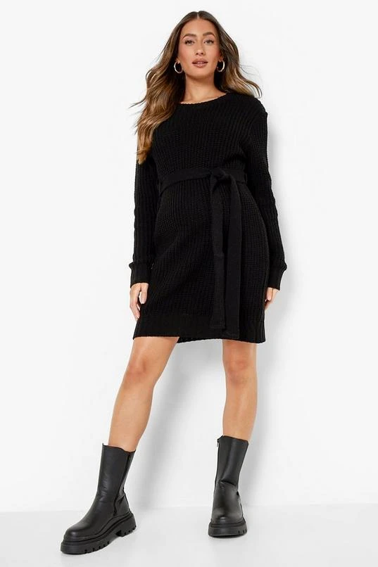 BOOHOO Maternity Soft Knit Tie Waist Sweater Dress