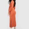 BOOHOO Maternity Soft Rib V Neck Midi Dress