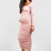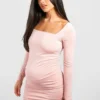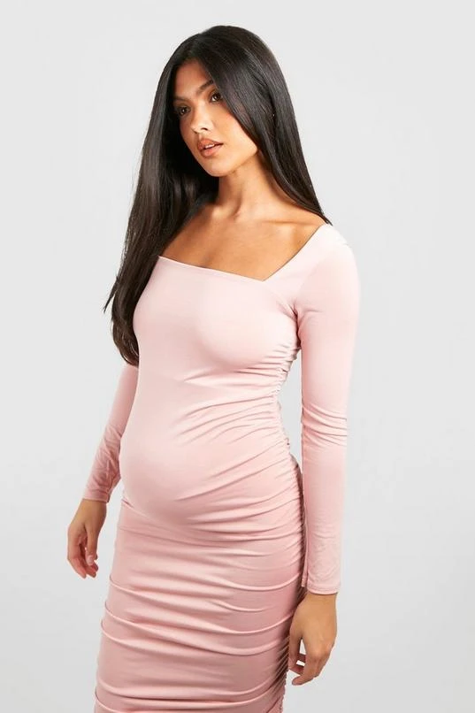 BOOHOO Maternity Square Neck Ruched Midi Dress