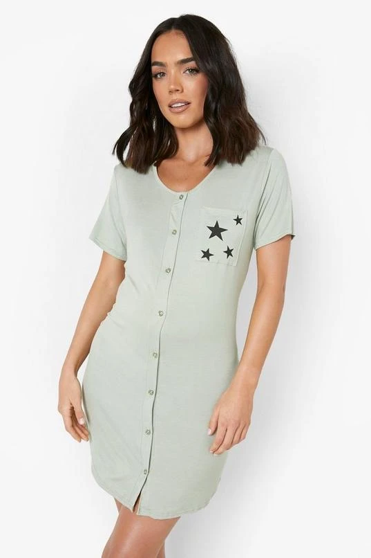 BOOHOO Maternity Star Pocket Print Button Nightgown