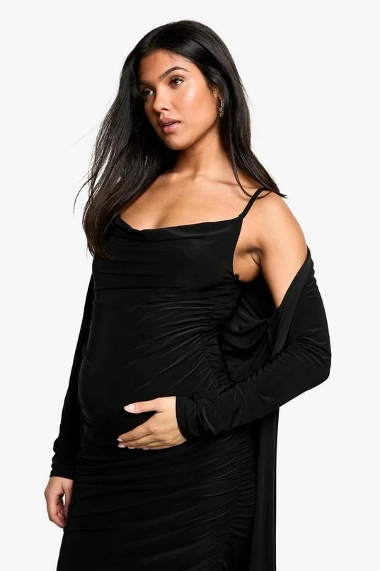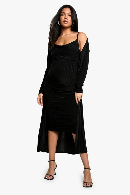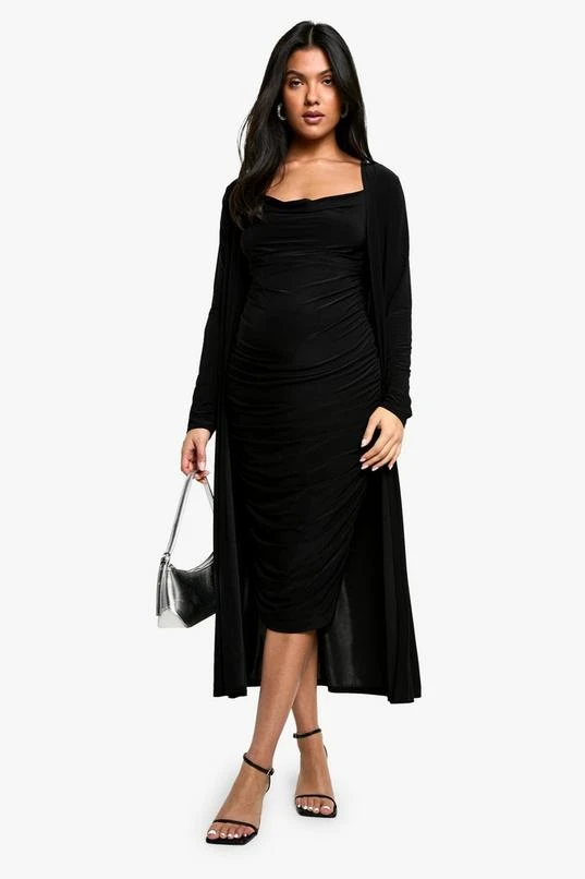 BOOHOO Maternity Strappy Cowl Neck Dress And Duster Coat