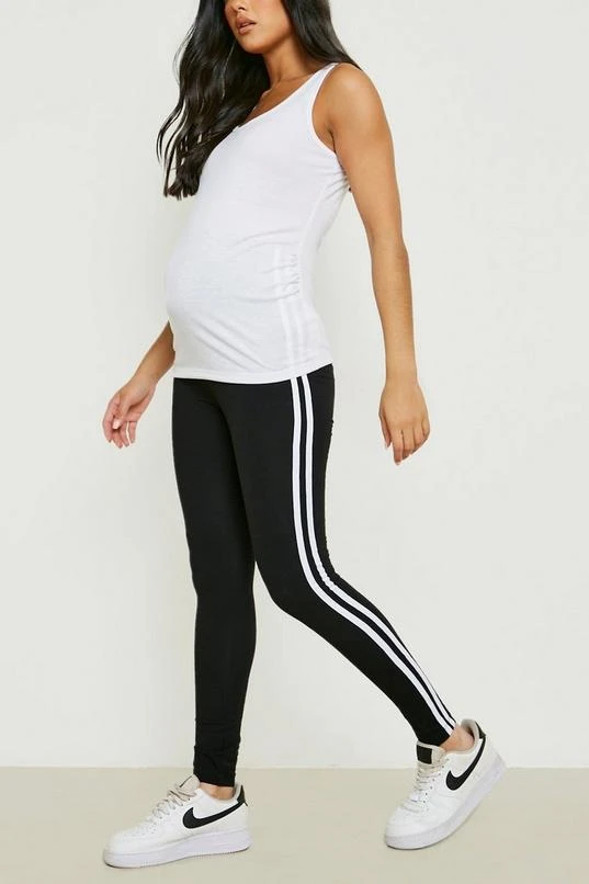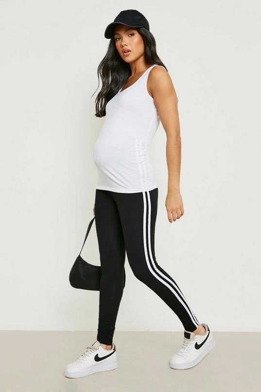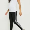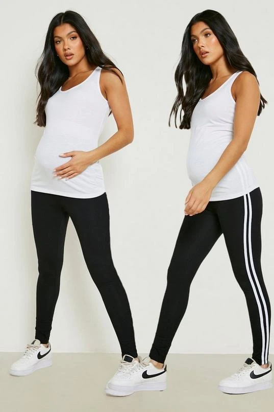 BOOHOO Maternity Stripe And Plain Leggings 2 Pack