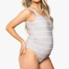 BOOHOO Maternity Stripe Ruched Bump Support Swimsuit