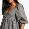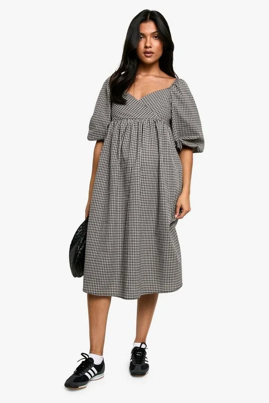 BOOHOO Maternity Woven Check Puff Sleeve Smock Midi Dress