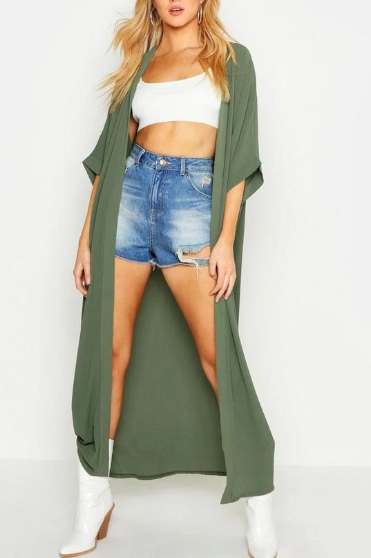 Looking to add something new to your outerwear closet? This kimono is a front wrap jacket, lightweight, and sporting oversized square sleeves. The fit is flattering and can be worn all year round. Add jean shorts and a tank top to this women’s kimono in warmer months, letting the jacket stand out from the crowd. Pair this kimono jacket with high-waisted pants and a long sleeve crop in winter, the perfect layering piece. Don’t forget to wrap the left side over the right!