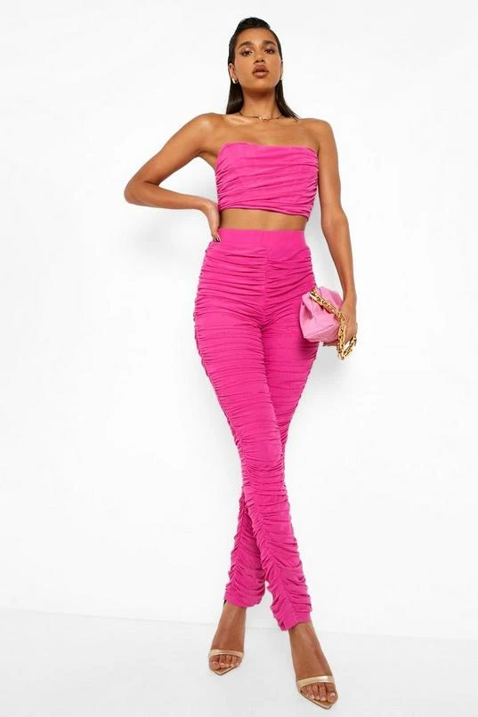 BOOHOO Mesh All Over Ruched Pants