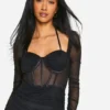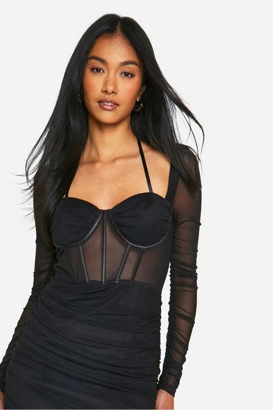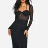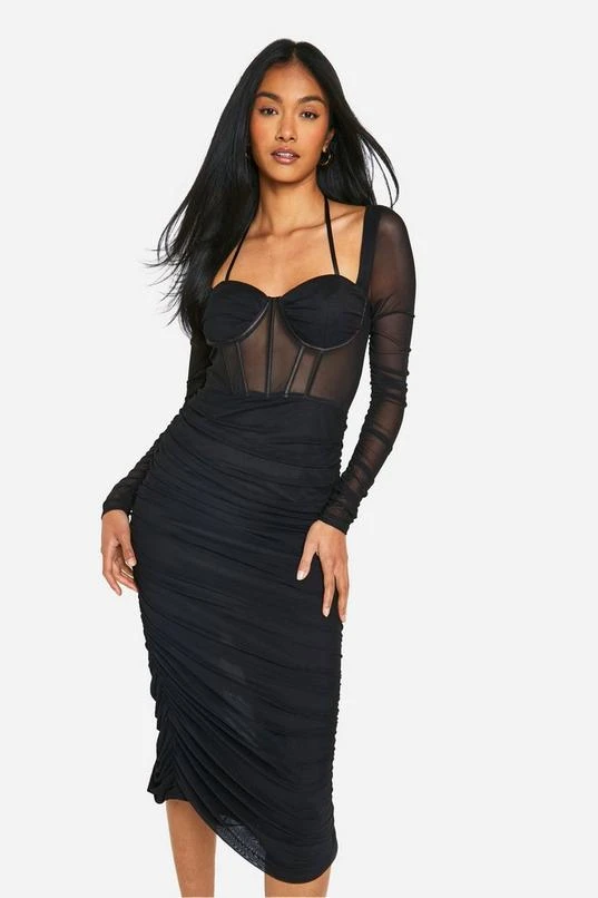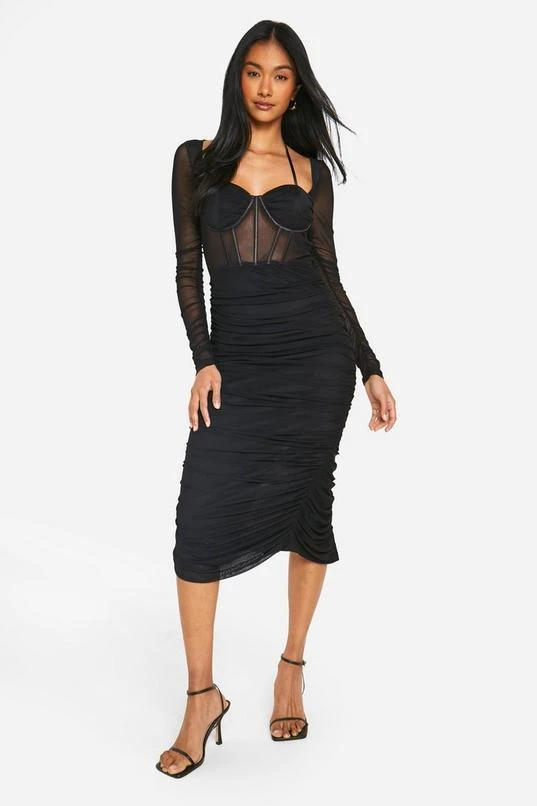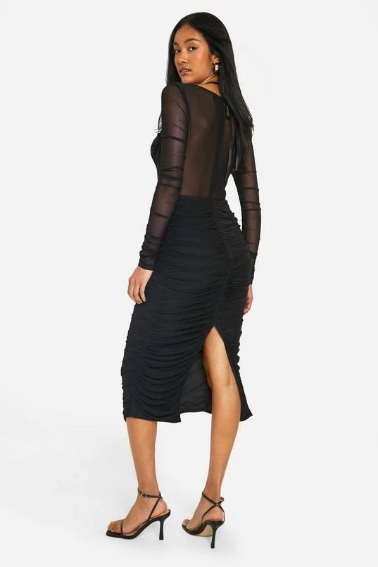 BOOHOO Mesh Cup Detail Ruched Midi Dress