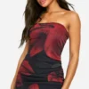 BOOHOO Mesh Flower Print Bandeau Maxi Dress