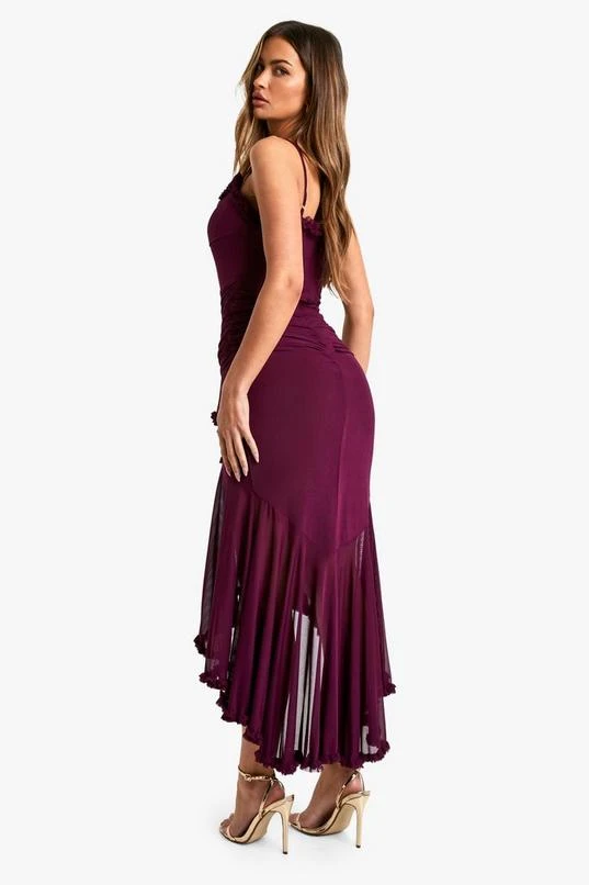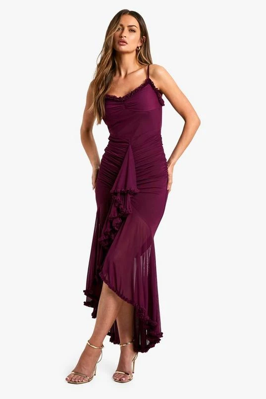 BOOHOO Mesh Ruffle Maxi Dress