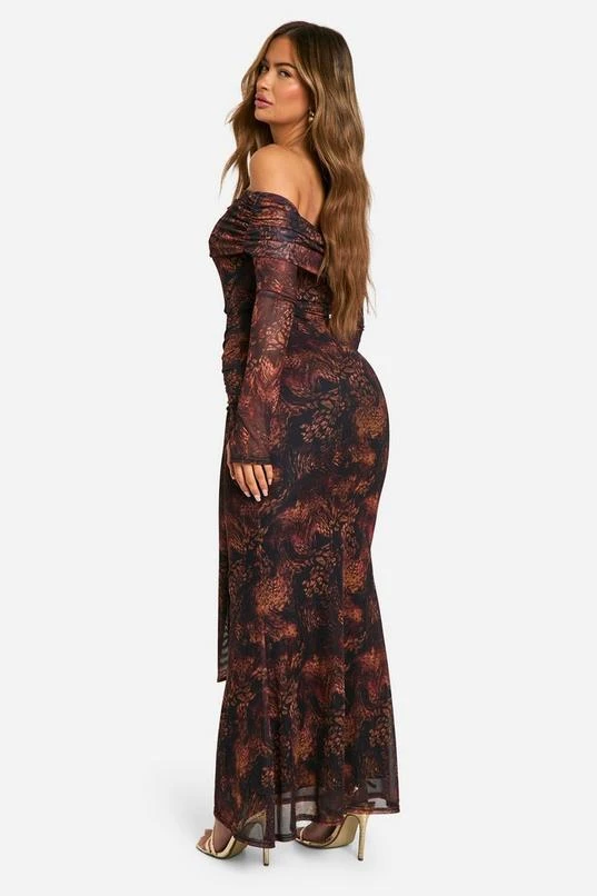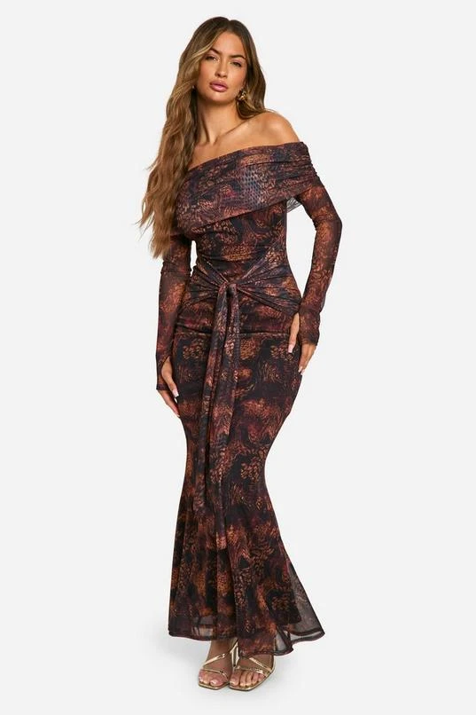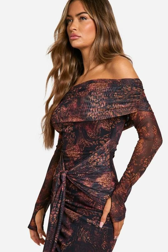 BOOHOO Mesh Snake Print Twist Detail Maxi Dress