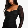 BOOHOO Mesh Square Neck Ruched Midi Dress