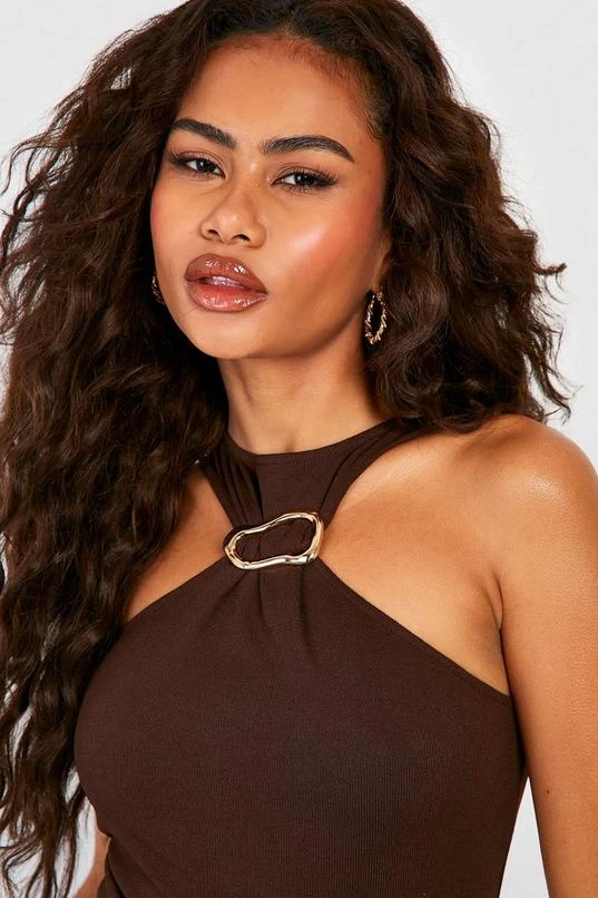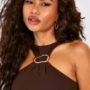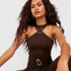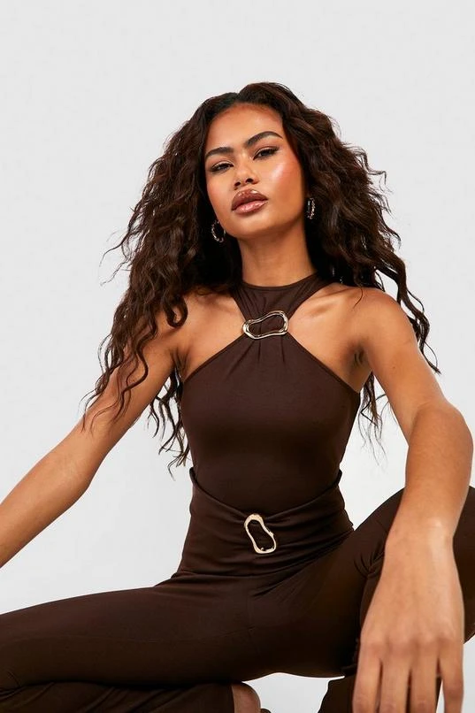 BOOHOO Metal Ring Twist Detail Flared Jumpsuit