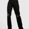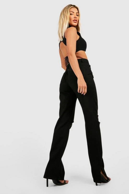 BOOHOO Mid Rise Ripped Knee Straight Fit Split Hem Jeans
