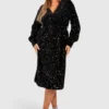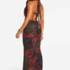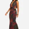 BOOHOO Mixed Print Leopard Plunge Ruched Bum Maxi Dress