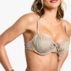 BOOHOO Multicoloured Stripe Tie Front Underwired Bikini Top & Tie Side Bikini Bottoms Set