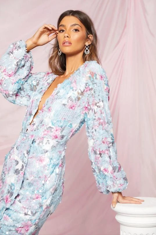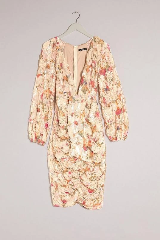Boohoo Occasion Sequin Puff Sleeve Midi Dress