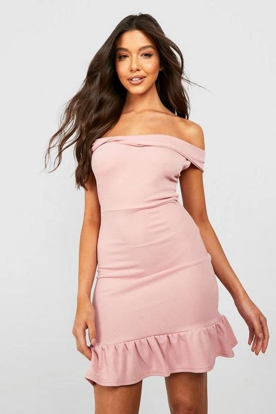 BOOHOO Off The Shoulder Frill Hem Mini Dress