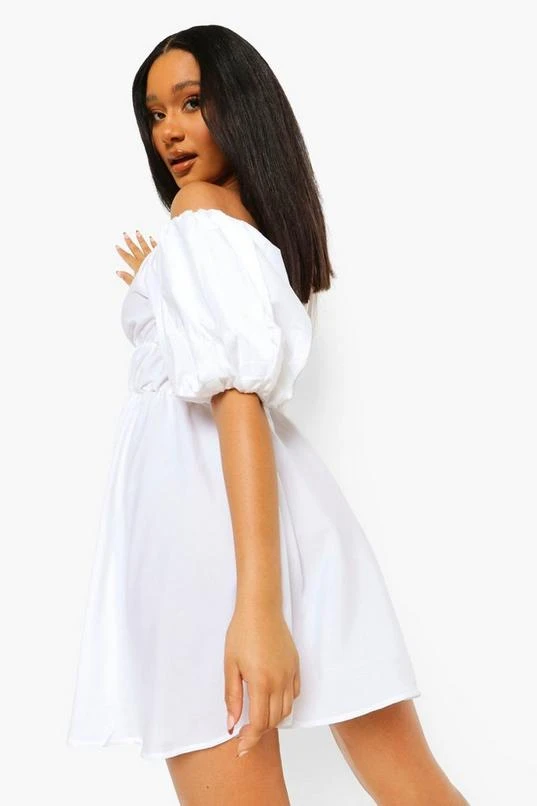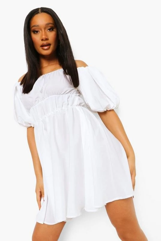 BOOHOO Off The Shoulder Ruched Skater Dress