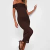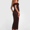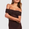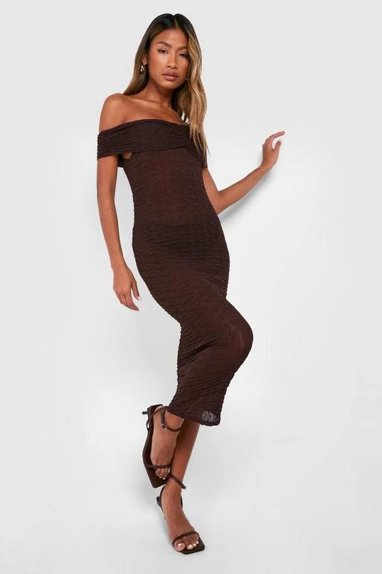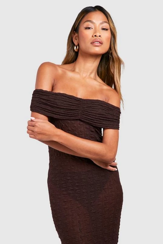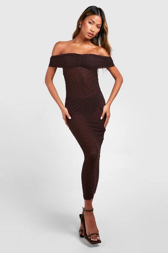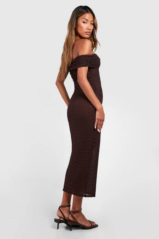 BOOHOO Off The Shoulder Ruched Textured Midi Dress
