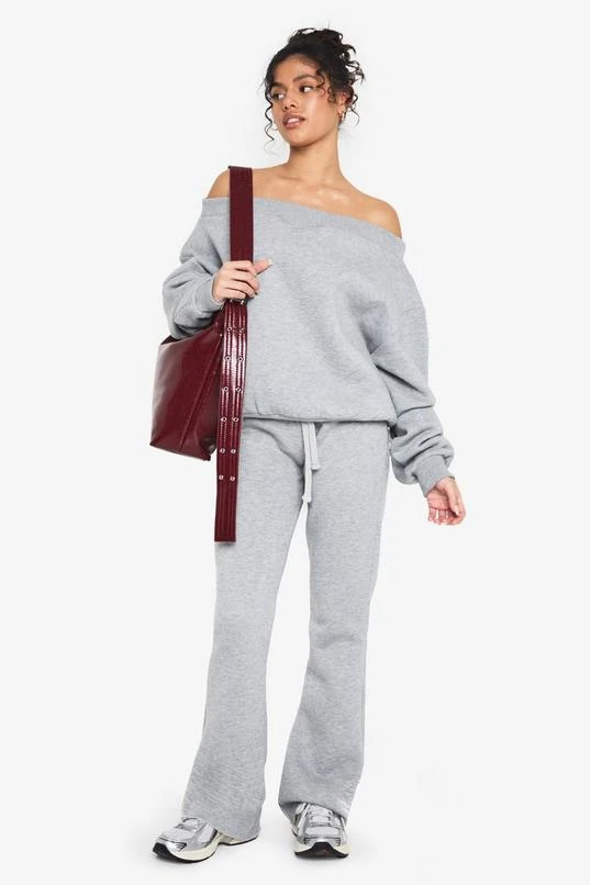 BOOHOO Off The Shoulder Sweatshirt And Flared Jogger Tracksuit